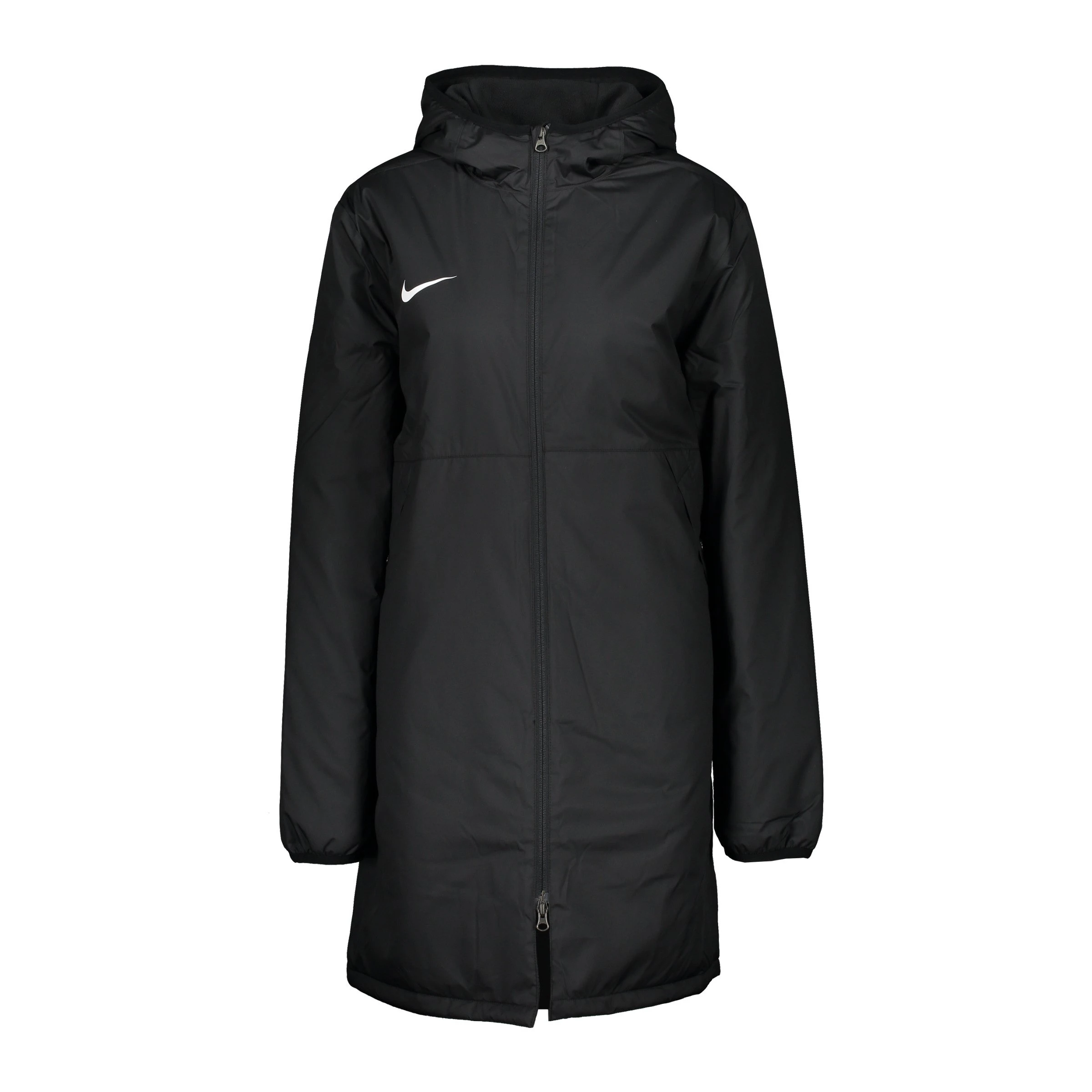 Mit der Damen-Jacke in Schwarz bringt Nike ein Produkt auf den Markt, mit dem ihr hervorragend ausgestattet seid und beweisen werdet, was in euch steckt. Das wärmende, atmungsaktive und super bequeme Modell überzeugt auf ganzer Linie. Ihr bekommt einen Wasserschutz geboten. Ein grandioses Auftreten beim Training und beim Match ist euch damit garantiert. Der 1971 gegründete und weltweit erfolgreiche Tophersteller aus den Vereinigten Staaten liefert euch ein tolles Einsteiger-Modell, auf das ihr euch verlassen könnt. Mit dieser Jacke könnt ihr euch ideal auf euren nächsten Gegner vorbereiten. Praktisch und sicher lässt sich euer Hab und Gut in den seitlichen Taschen verstauen. Diese langärmlige Jacke besitzt einen trendigen Stehkragen sowie einen langen Schnitt.